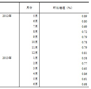 根據季節調整模型自動修正結果,對2012年5月至2013年5月份規模以上工業增加值環比增速進行修訂。修訂結果及2013年6月份環比數據如下: