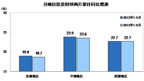 分地區看,1-6月份,東部地區投資86741億元,同比增長18.7%,增速比1-5月份回落0.3個百分點;中部地區投資49509億元,增長23.6%,增速回落0.3個百分點;西部地區投資44170億元,增長22.7%,增速與上月持平。