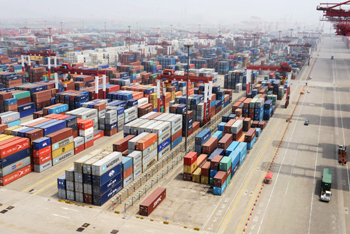 青島港外貿集裝箱堆場。新華社發(俞方平 攝) |