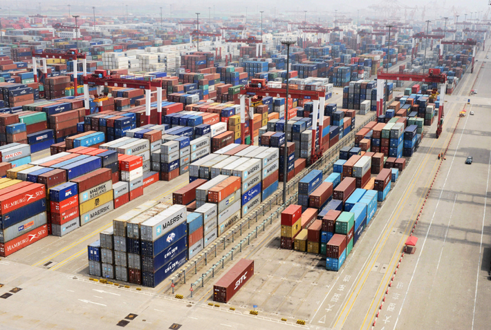 青島港外貿集裝箱堆場。新華社發 俞方平/攝 |
