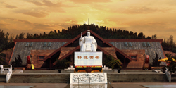 巍巍具茨,泱泱姬水,軒轅之丘,天將帝胄。這個高大的土丘,就是象征性的軒轅黃帝的誕生地--軒轅丘。傳說,黃帝母親附寶在游玩,突然感光受孕,孕24月,才生下軒轅黃帝。關于軒轅丘的確切位置,史書、碑刻也多有記載:晉代《天下名勝志》說:“新鄭縣城內有軒轅丘”清嘉慶二十八年(公元1823年)和民國十九年(公元1930年)《密縣志》記載:“密縣大隗鎮3里許,有‘七圣廟’,新鄭軒轅丘距此四十余里!睂嶋H上,軒轅丘是以軒轅故里為中心綿延數十里的大土丘。此土丘下,有當今世界上獨一無二的建筑--軒轅黃帝紀念館,總建筑面積4000平方米,其造型為仰韶時期即黃帝時期的大房子造型,房子一半在地上,一半在地下,呈巨大人字型,好像是從地底長出來一樣,寓意為黃帝出生之地。