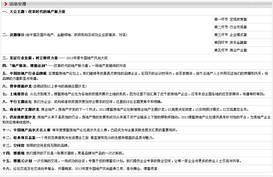 2013博鰲房地產論壇活動安排