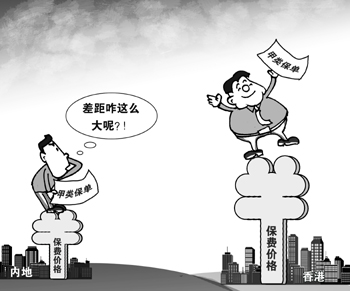“在香港買保險的費率的確比內地低,如重大疾病險,大致比內地低兩至三成。若購買壽險附加重大疾病險,費率一般僅為內地的1/2甚至1/3!盇IA友邦保險的一位代理人表示,由于香港保險市場競爭激烈,價格雖然便宜,保障范圍卻更廣。