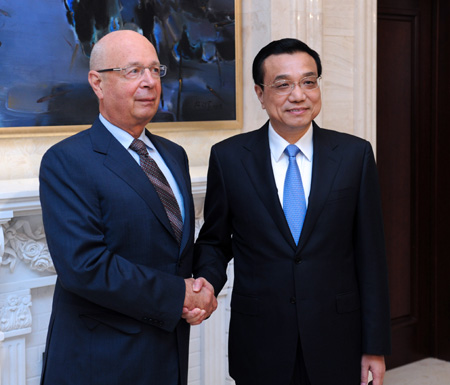 國務院總理李克強9日在大連會見世界經濟論壇主席施瓦布。