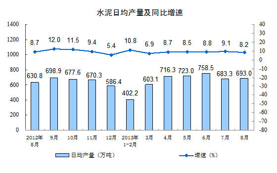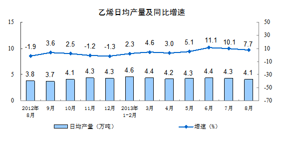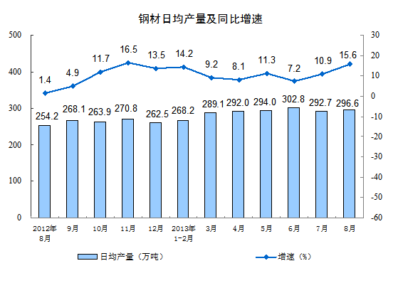 分產品看,8月份,464種產品中有305種產品同比增長。其中,發電量4987億千瓦時,同比增長13.4%;鋼材9194萬噸,增長15.6%;水泥21484萬噸,增長8.2%;原油加工量3974萬噸,增長5.5%;十種有色金屬337萬噸,增長5.7%;乙烯126萬噸,增長7.7%;汽車179.6萬輛,增長14.8%;轎車102.3萬輛,增長11.2%。