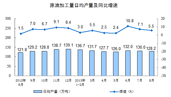 2013年8月份規模以上工業生產主要數據
