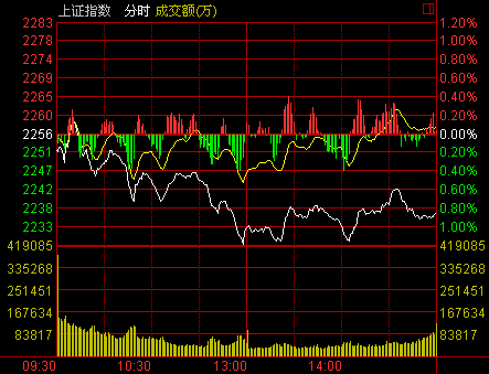 周五兩市小幅低開,滬指早盤縮量震蕩。環保、金改、物流等板塊表現活躍,金融、煤炭等權重股紛紛退潮,拖累股指連續下挫,滬指盤中跌逾1%,創業板則逆市拉升。午后滬指于2240點下方震蕩,文化傳媒股盤中拉升,華誼兄弟領漲漲停。