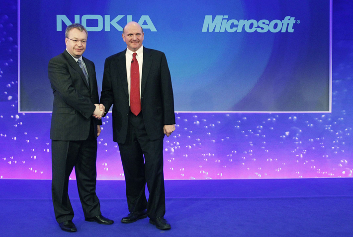 微軟與諾基亞的戰略合作始于2011年2月。雙方商定:諾基亞的智能手機摒棄塞班系統,只采用微軟的Windows Phone系統;作為交換,微軟免收諾基亞的系統使用費。