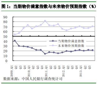 居民物價滿意指數為21.4%,比上季回落0.4個百分點。其中,59.7%的居民認為物價“高,難以接受”,比上季上升0.6個百分點。居民未來物價預期指數為70.5%,比上季提高3.7個百分點。其中,41.7%的居民預期下季物價水平“上升”,48%的居民預期“基本不變”或“下降”,10.3%的居民“看不準”。