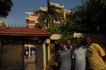 這座位于喀土穆利雅得區第16街區的5層居民小樓,就是中石油管道局蘇丹分公司和中油管道投產運行公司蘇丹分公司所在地。圖為聚集在分公司門前的蘇丹雇員!