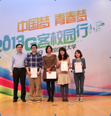 9月25日,“中國夢 青春夢——2013G客G拍原創視頻大賽”北京站校園活動,在中國傳媒大學正式啟動,這也是本年度G客G拍原創視頻大賽的重點活動之一。中國移動2013G客G拍原創視頻大賽分為六大板塊:作品征集、G客G拍校園行、新媒體展映、手機院線發行、作品評選、G客盛典。截止到11月15日之前,感興趣的觀眾均可以通過互聯網(大賽官網www.gkgp.com)或新浪微博(官微:G客G拍)上傳作品,參與比賽。