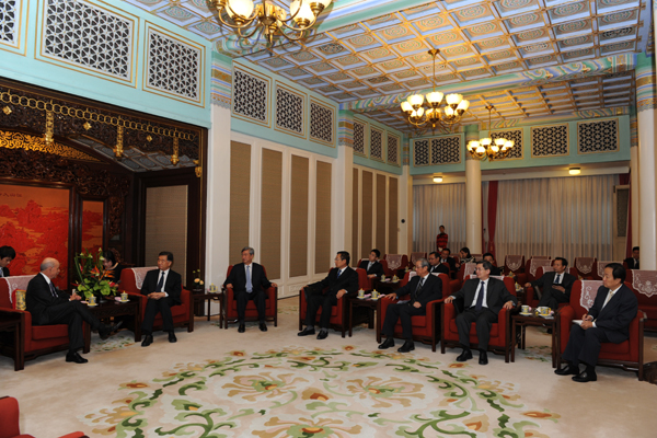 新華社社長李從軍(左三),經濟參考報總編輯杜躍進(右一)參與會見