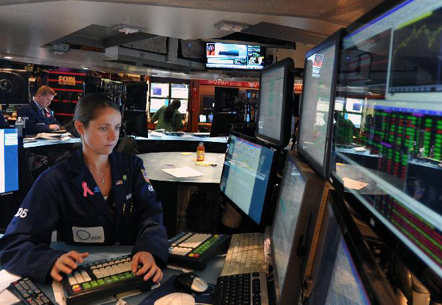 10月18日,交易員在紐約股票交易所內操作。新華社記者王雷攝