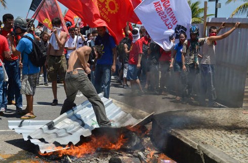 當地時間10月21日,巴西里約熱內盧近海一座油田舉行開采權競標,引發示威者抗議,與負責安保的大量配槍巡邏士兵發生沖突。