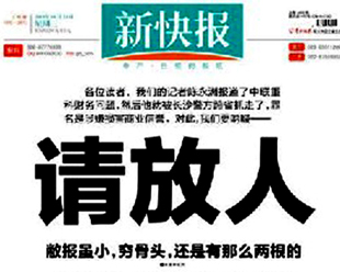 新快報就記者被刑拘頭版再吁放人