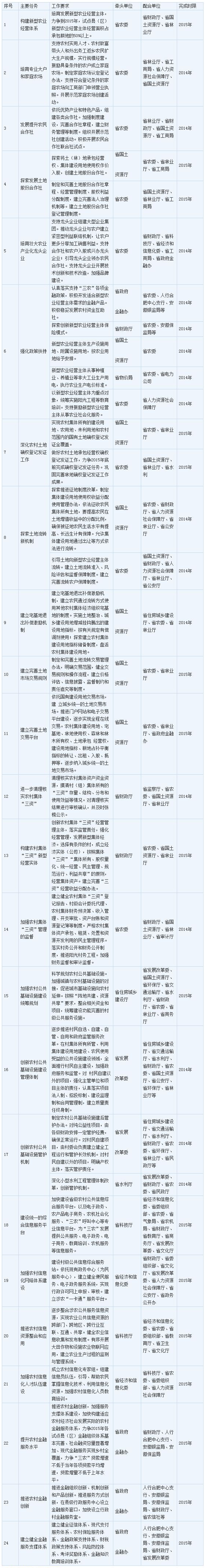 【安徽省人民政府發布的農村綜合改革示范試點主要工作任務分解表】
