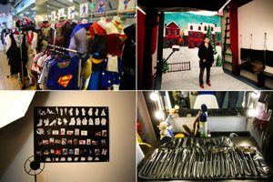 左上圖:自拍照相館的道具服裝區。 左下圖:自拍攝影棚內指導拍攝者擺造型的指南。該指南有助于拍攝者尋找創意、緩解緊張情緒、迅速進入拍攝狀態。 右下圖:自拍照相館準備的化妝用具。 右上圖:一名自拍者在影棚內手持遙控器準備自拍。 新華社發(陳益宸 攝) |