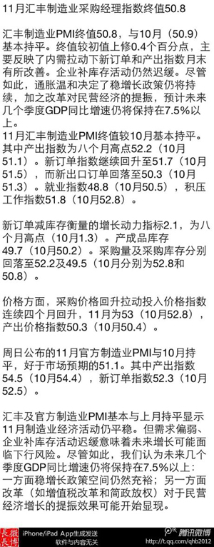 11月匯豐制造業PMI終值50.8 新訂單指數創八月新高