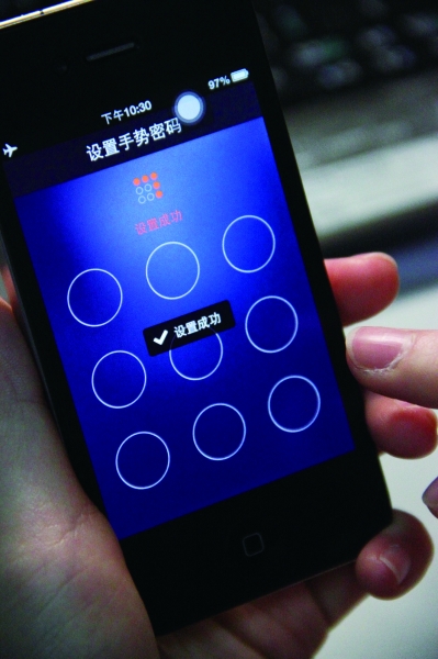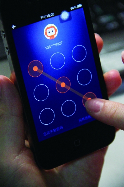 上午,《法制晚報》記者用一部安裝了iOS6的iPhone4手機進行測試,前后用時不到兩分鐘,便重新設置了支付寶圖形密碼,并順利為手機充值50元。