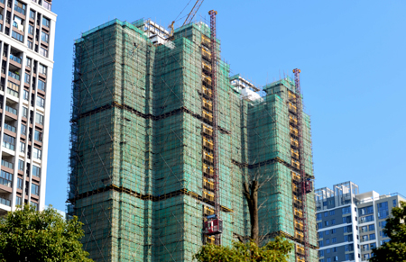 這是在廈門市環島路上的一幢在建大樓工地。當日是2014年元旦,從1月1日開始,廈門市規定商品房開發項目預售門檻提高,商品房須建成七層以上方可預售。新出臺的《廈門市商品房預售管理規定》明確,預售商品房投入開發建設的資金須達到該項目工程建設總投資的25%以上。