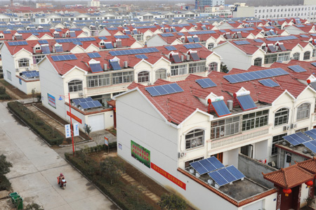 1月8日,隨著最后一戶村民家的光伏發電設備并網成功,江蘇省首個農民住宅小區連片屋頂“光伏發電村”在連云港市東?h青湖鎮青南村并入國家電網,正式開始發電。 青南村屋頂光伏發電項目由江蘇省經信委投資建設,129戶居民的屋頂被安裝1556塊多晶硅太陽能組件,采用自發自用、余電上網的方式,預計所發電量的80%供居民使用,剩余20%由國家電網公司收購,年發電量可達39.33萬千瓦時。與燃煤發電相比,該光伏發電項目每年可以節省標準煤128噸,減少二氧化碳排放341噸。