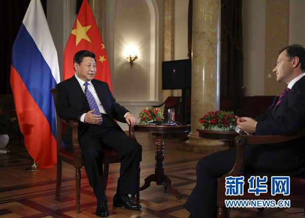 習近平:去年3月,我在當選中國國家主席幾天后,就應普京總統邀請來到貴國進行國事訪問,貴國是我當選中國國家主席后第一個訪問的國家。那次,我同普京總統進行了長時間的議題廣泛、坦誠深入的交流,就加強中俄全方位戰略協作達成重要共識,作出全面規劃。此后我們又4次會晤和見面。昨天,我同普京總統會晤時共同作了回顧。我們共同推動兩國在涉及彼此核心利益的重大問題上相互堅定支持,把兩國關系的政治優勢轉化為合作優勢,雙方經貿、能源、高技術、地方、人文、國際事務等各領域合作取得豐碩成果,促進了兩國共同發展繁榮,維護了國際公平正義和世界和平穩定。我對中俄關系發展取得的成果十分滿意。當前中俄關系發展是基礎最牢、互信最高、地區和國際影響最大的一個時期。