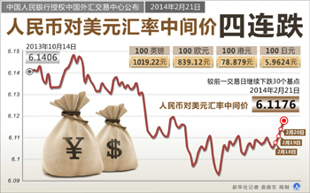 “此次的中間價連續下跌,是央行有意分化人民幣升值的預期!睂ν饨涃Q大學金融學院兼職教授趙慶明對《經濟參考報》記者說。從去年12月美聯儲宣布逐漸縮減購債規模開始,印度、土耳其等新興市場國家受到國際資本撤出沖擊貨幣普遍大幅貶值,但是同處新興市場國家之列,面對同樣的金融市場環境,人民幣似乎“獨善其身”,幣值仍然堅挺,市場也較為一致看好人民幣繼續升值。而從外匯占款等指標來看,外部資金也仍然持續流入中國。最新的1月份外匯占款統計數據還未公布,不過,趙慶明表示,預計1月份外匯資金流入依然顯著,央行的策略是引導人民幣匯率略微走弱,也借此警示進來的熱錢。
