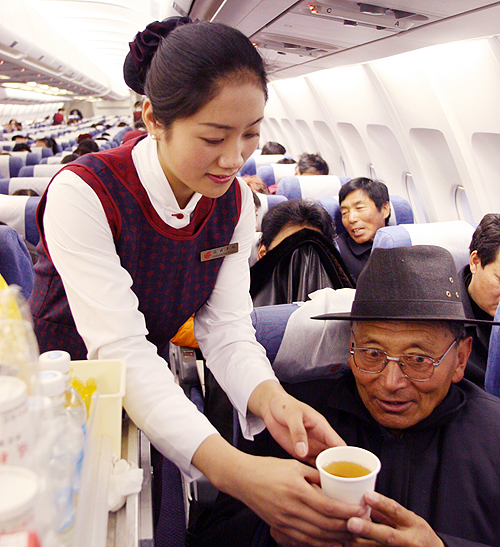 為促進西藏民航事業發展,國航成立了自治區首家基地航空運輸企業—國航西藏分公司,招收了中國民航首批藏族女乘務員和藏族大學本科飛行員,在拉薩機場啟用了全球行李查詢系統。目前,國航每周進出西藏的航班超過140班,年旅客運輸量達97.6萬人次,其中成都—拉薩航線從開航當年的4000人增至45.35萬人次。