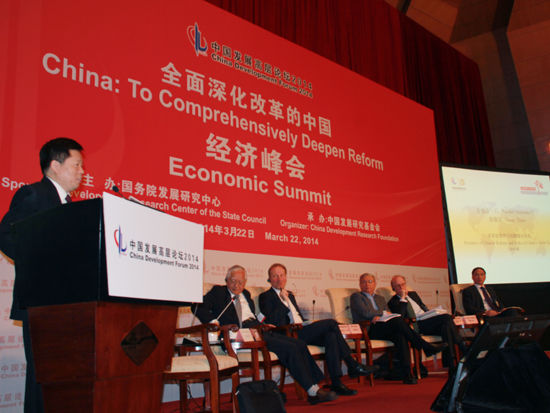 “中國發展高層論壇2014”于3月22日-24日在釣魚臺舉行。圖為“改革優先序與短期增長風險”分會場。