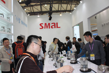 智能化不僅僅是體現在大家電產品上。記者在展會上發現了一款號稱中國國內市場首款具備移動互聯智能控制技術的電水壺。這款名叫西摩“小智”的智能電水壺,內置了Broadcom的Wifi芯片,采用上海慶科的Easy-link技術,并且無論是IOS系統還是Android系統均有對應的APP下載,可以輕松實現多個移動端通過網絡從任何地點對其進行控制,也可以一臺手機控制家里的多個水壺。