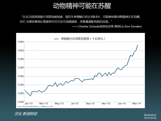 “過去15周美國銀行貸款急劇加速,現在年率增幅已經達到8.6%,可能意味著動物精神正在蘇醒。但它也意味著我們需要密切關注貨幣流通速度,來衡量通脹風險的出現!薄狢harles