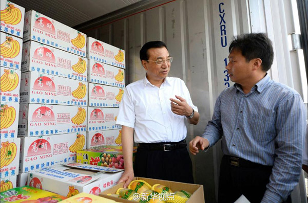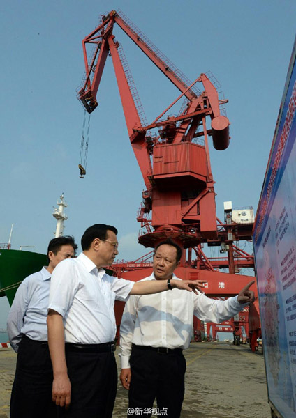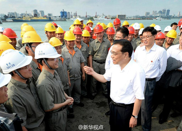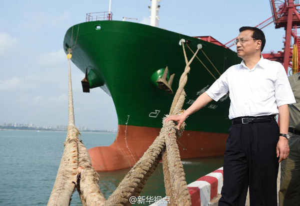 李克強總理到?诟鄞a頭了解貨物吞吐量及發展規劃等情況。他說,海南省四面環海,地處改革開放前沿。作為中國最大的經濟特區,海南的開放要從國家層面通盤考慮,力爭成為國家對外開放的重要支撐點,要敢闖敢試,用開放帶動、促進改革,倒逼改革。