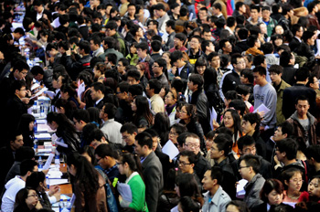 東北大學2014屆畢業生春季就業雙向選擇洽談會上人頭攢動!⌒氯A社發(張文魁/攝) |