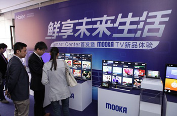 4月10日,海爾智慧管家Smart Center在北京正式發布。同時,海爾還發布了55寸、42寸MOOKA智能電視新品,延續了以往一貫的高配置、低價格的特點。