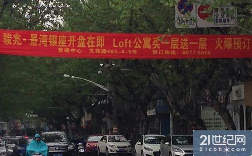 據悉,在12日當天,還有慕容城、景灣銀座等多個樓盤項目也在進行搶籌和開盤。在海寧大街上,到處都是房產公司的促銷廣告,開元名都拉起了橫幅“存2000抵80000”,景灣銀座則打出“LOFT公寓買一層送一層”的標語。