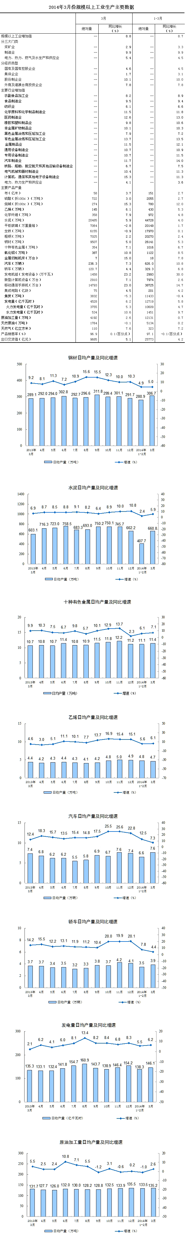 2014年3月份,規模以上工業增加值同比實際增長8.8%(以下增加值增速均為扣除價格因素的實際增長率),比1-2月份加快0.2個百分點。從環比看,3月份比上月增長0.81%。一季度,規模以上工業增加值同比增長8.7%。