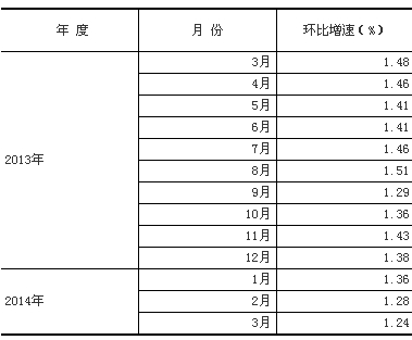 根據季節調整模型自動修正程序,對2013年3月份以來的固定資產投資(不含農戶)環比增速進行修訂。修訂結果及2014年3月份環比數據如下: