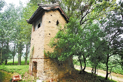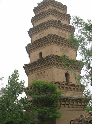 白馬塔位于延津縣西北石婆固鄉塔鋪村廣唐寺內,始建年月無考,F存明嘉靖四十二年(1563)《重修廣唐寺塔記碑》載:“廣唐寺創于古酸邑,……及黽遷通郭,居人列寺之東向,及以塔名鋪!睋浣ㄖY構與風格判斷不早于宋代。傳說該塔修至八層因水患停工,塔頂至今未封。白馬塔為六角九級樓閣式磚塔,三層以上逐層明顯收縮,稍呈拋物線形。各層飛檐均用青磚雕花疊澀砌成,上面為花檐,下面磚雕斗拱及仿椽頭,各層高度不一。