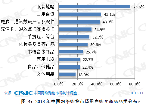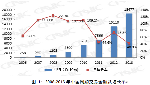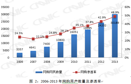 2014年4月,中國互聯網絡信息中心CNNIC發布了《2013年中國網絡購物市場研究報告》。報告顯示,2013年網絡購物市場穩步快速向前發展,彰