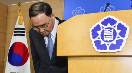 韓國總理鄭烘原27日因“歲月”號沉船事故引咎辭職?偨y府青瓦臺發言人閔庚旭當天在記者會上表示,總統樸槿惠批準了總理鄭烘原的辭職請求。由于當前的首要任務是“歲月”號沉船事故的搜救工作,因此將在事故處理工作收尾后受理辭呈。
