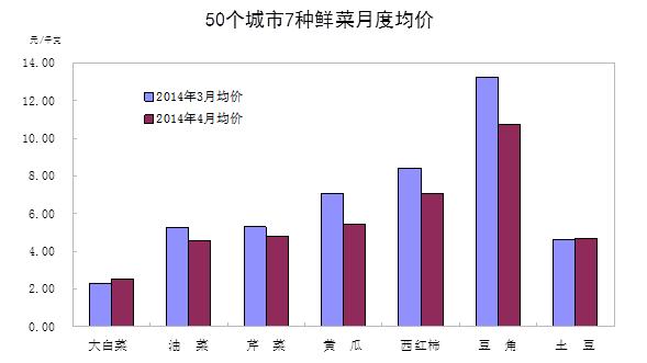 從發布的環比數據看,4月份鮮菜和豬肉價格下降比較突出,兩者合計影響CPI下降0.51個百分點,超過了CPI總降幅,是環比下降的主要原因。從歷史數據看,鮮菜價格為近三年同期最低水平。國家統計局此前發布的50個城市主要食品價格監測數據也顯示,今年4月份黃瓜、豆角、西紅柿和油菜每千克均價分別為5.42元、10.74元、7.07元和4.53元,比3月份均價分別下降了23.2%、18.7%、16.0%和14.1%,價格下降較多。