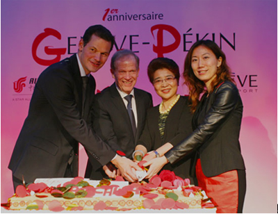 日內瓦州議會副議長皮埃爾·默岱代表州政府對日內瓦至北京航線開航周年慶典表示祝賀,他表示這種建立在互惠互利、信任共贏基礎上的合作是中瑞企業交流的成功典范。隨著兩國合作的進一步深化,雙方的商務和旅游需求也將不斷加強。他歡迎更多的中國游客來日內瓦參觀旅游,他認為這條航線的開通為日內瓦的旅游業、奢侈品行業、酒店業、金融業等都帶來更多的商機。
