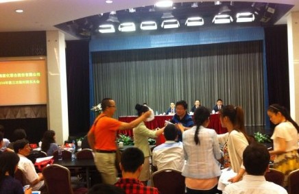 整個投票過程并不平靜,小股東不斷表達對大股東平安信托的代表、上海家化現任董事長兼總理謝文堅的不滿,現場言語沖突不斷。