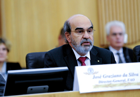 聯合國糧農組織監測的糧食價格指數連續兩個月下降,糧農組織總干事若澤·格拉齊亞諾·達席爾瓦近日在接受新華社記者專訪時說,目前影響糧食價格的不確定因素仍然存在,全球治理與天氣因素同等重要! 圖為,在意大利首都羅馬,若澤·格拉齊亞諾·達席爾瓦在表彰智利、中國、摩洛哥等國家反饑餓突出成績的會議上講話。