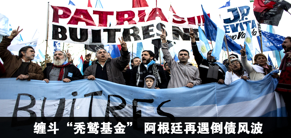 此外,上千名阿根廷民眾20日在美國駐阿根廷大使館門前舉行聲勢浩大的游行示威,抗議“禿鷲基金”對阿根廷人民的“劫掠行為”,要求美國政府停止對“禿鷲基金”的支持。