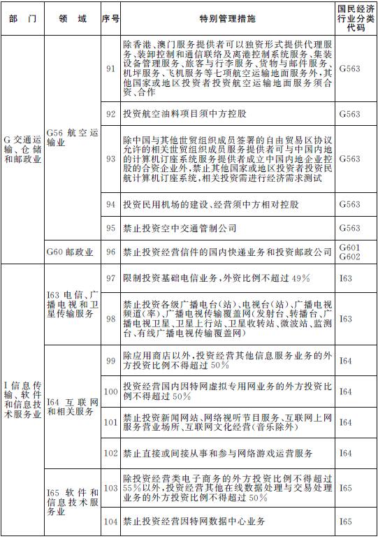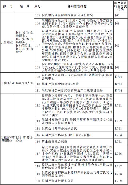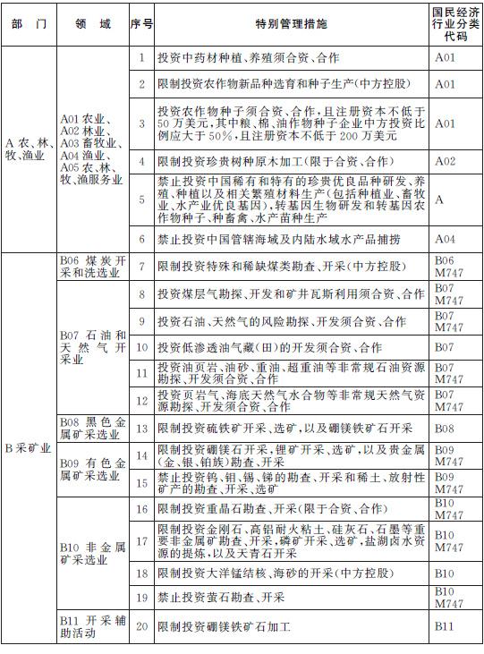 除列明的外商投資準入特別管理措施,禁止(限制)外商投資國家以及中國締結或者參加的國際條約規定禁止(限制)的產業,禁止外商投資危害國家安全和社會安全的項目,禁止從事損害社會公共利益的經營活動。