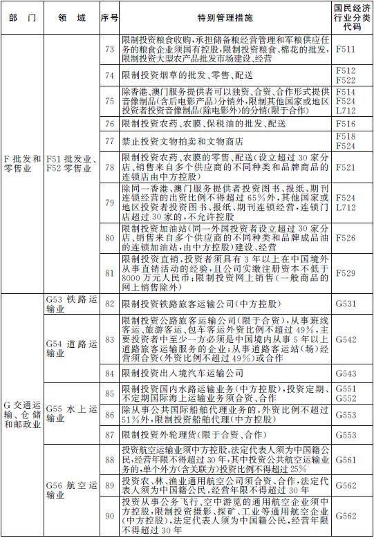 《中國(上海)自由貿易試驗區外商投資準入特別管理措施(負面清單)(2014年修訂)》(以下簡稱“負面清單”),以有關法律法規、國務院批準的《中國(上海)自由貿易試驗區總體方案》、《中國(上海)自由貿易試驗區進一步擴大開放的措施》、《外商投資產業指導目錄(2011年修訂)》等為依據,列明中國(上海)自由貿易試驗區(以下簡稱“自貿試驗區”)內對外商投資項目和設立外商投資企業采取的與國民待遇等不符的準入措施。負面清單按照《國民經濟行業分類及代碼》(2011年版)分類編制,包括18個行業門類。S公共管理、社會保障和社會組織、T國際組織2個行業門類不適用負面清單。