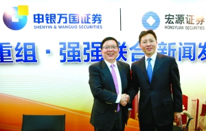 2014年7月25日,宏源證券宣布將與申銀萬國證券換股合并,申銀萬國將向宏源證券股東發行A股,合并后申銀萬國將作為存續公司并繼續申請在深圳交易所上市。