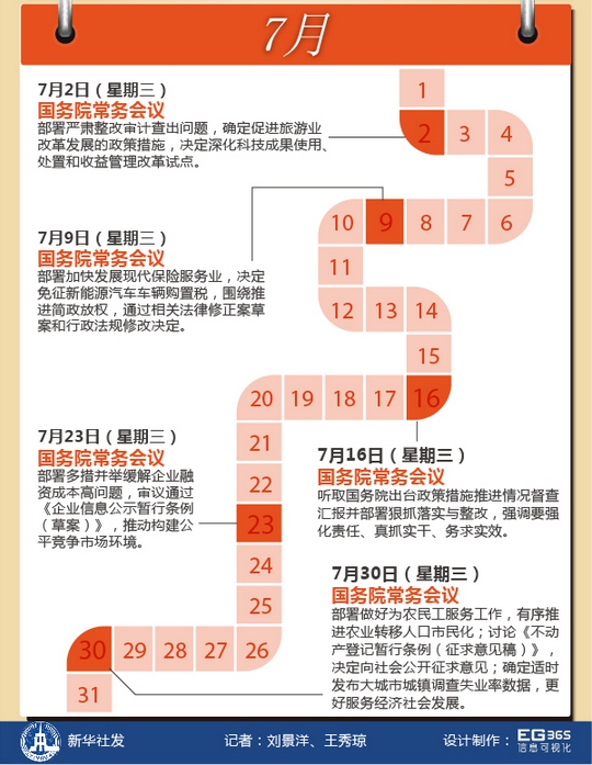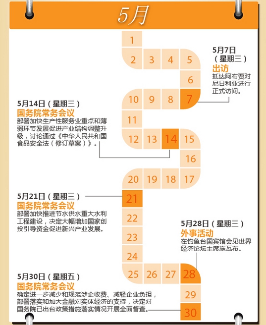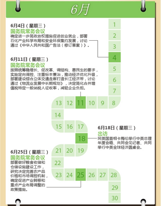 您一周哪天最忙?中國國務院總理李克強的回答很可能是——星期三。在今年前7個月的31個星期三里,除去元旦、春節兩次休息、8次出席重要活動或考察出訪、一次未見公開報道,李克強都在主持召開國務院常務會議。星期三,成為觀察中國經濟轉入中高速增長新常態下的窗口。