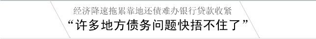 | 《經濟參考報》記者在多省采訪發現,部分地區在經濟下行的壓力下收入增速不斷下降、發展方式轉變緩慢,債務問題因此凸顯。與此同時,伴隨土地及房地產市場的陡然降溫,過去借債發展、靠地還債的粗放發展模式難以為繼,一些地方的債務風險迅速積聚。隨著債務進入集中還款期,部分地區對土地更為依賴,逆市場形勢加速賣地步伐;銀行等金融部門因擔憂地方債風險,對政府貸款往往“明松暗緊”,致使不少地方“腹背受敵”。 | |